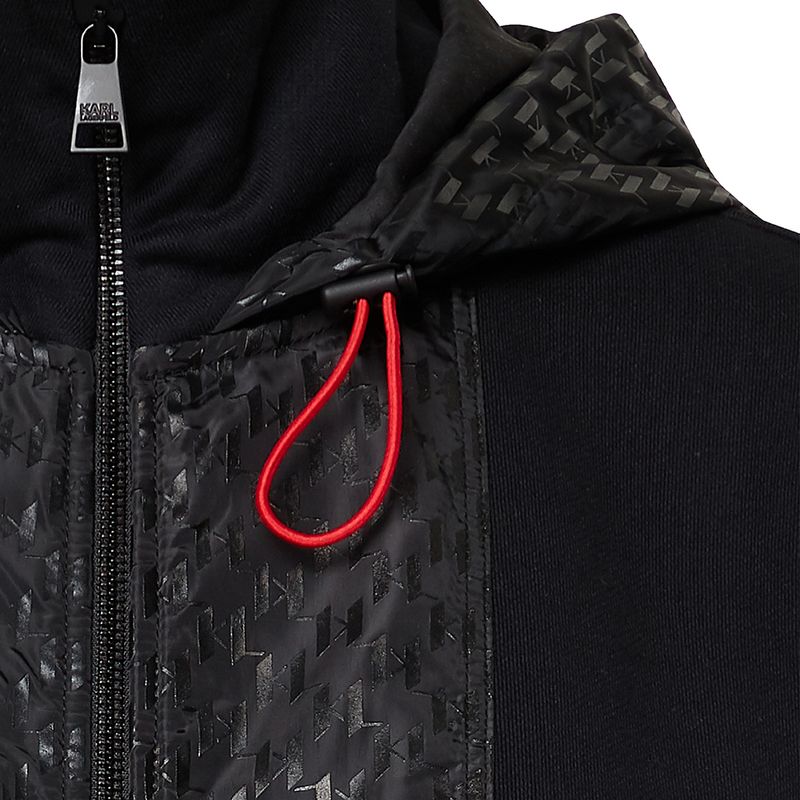 Chaleco karl lagerfeld para mujer, confeccionado en 100% algodón orgánico que garantiza comodidad y respeto por el medio ambiente. destaca por su estampado de monograma en toda la prenda, capucha ajustable, cierre frontal con cremallera y bolsillos abiertos laterales. una prenda moderna y versátil, ideal para darle un toque urbano y sofisticado a tu look