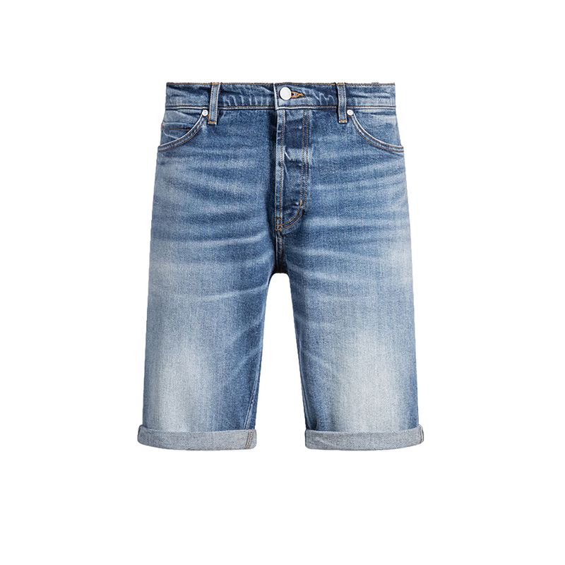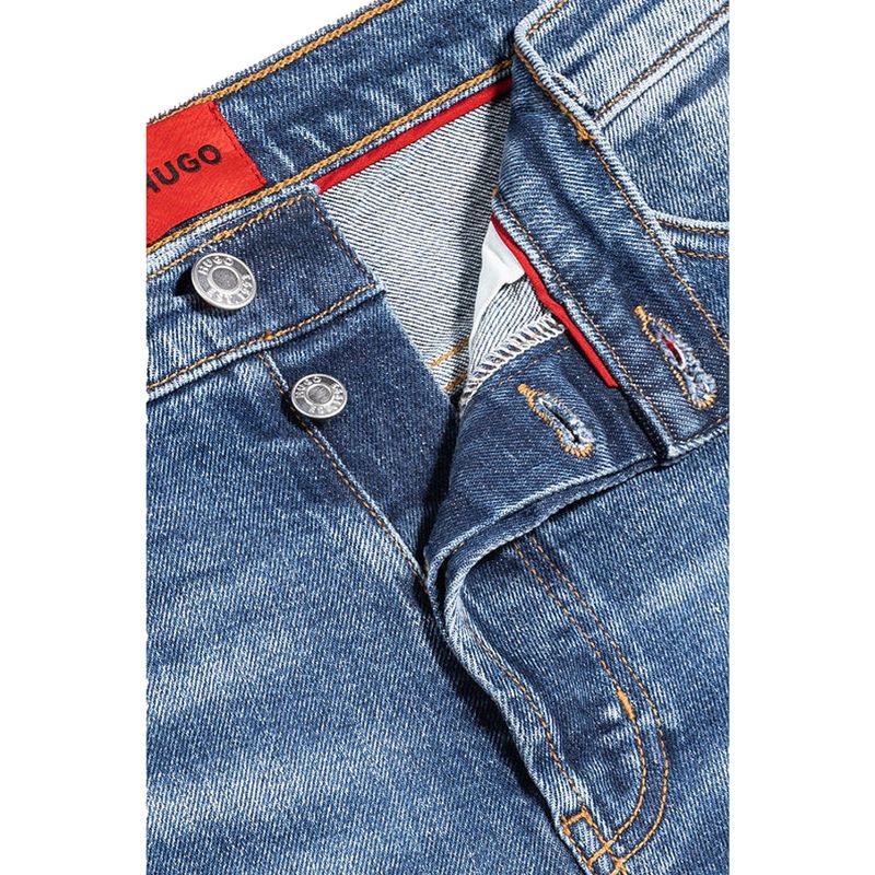 Bermudas vaqueras Hugo en color azul para hombre, confeccionadas en denim de alta calidad con mezcla de algodón orgánico y reciclado. Su ajuste moderno ofrece comodidad y versatilidad, mientras que el diseño incluye cinco bolsillos, cierre con botón metálico y cremallera. El acabado lavado aporta un estilo fresco y juvenil, ideal para looks casuales y urbanos durante la temporada de calor. Una prenda atemporal que combina con camisetas, polos o camisas ligeras.