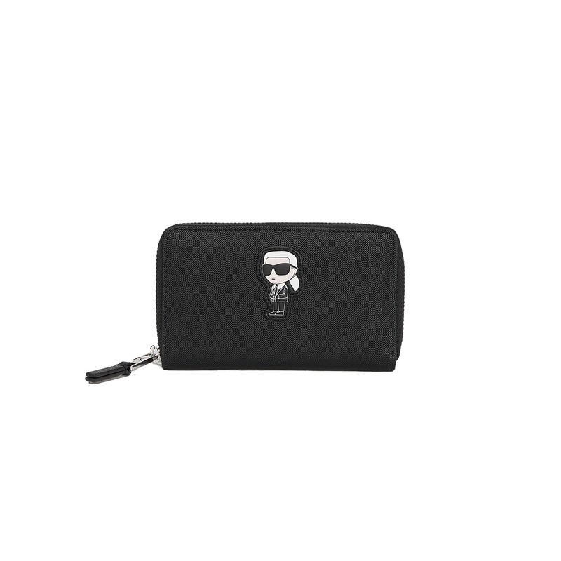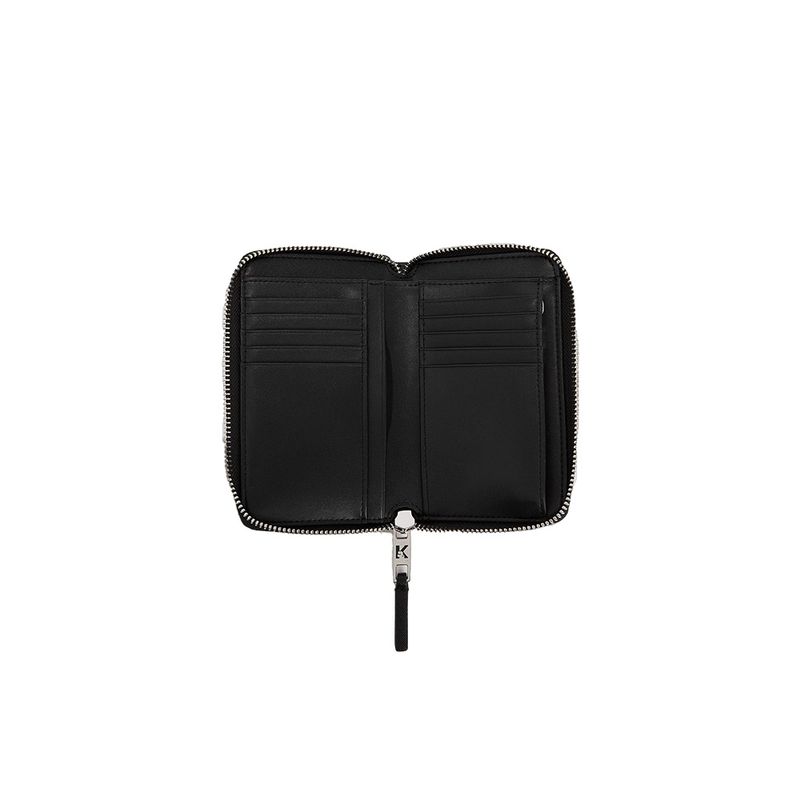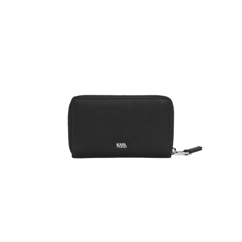 Billetera Karl Lagerfeld negra con logotipo estampado y cierre de cremallera