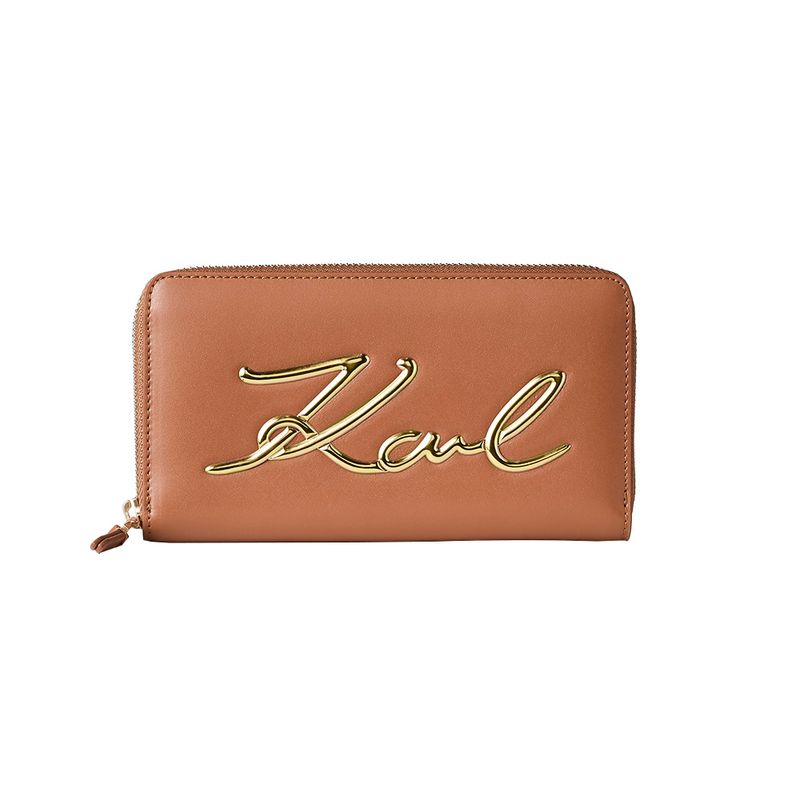 Billetera Karl Lagerfeld de la colección K/Signature elaborada en cuero suave, compuesta por cuero natural exterior y poliuretano, y cierre con cremallera para mayor seguridad. Cuenta con múltiples ranuras para tarjetas y un compartimento central con cierre de cremallera para mayor seguridad y organización. Sofisticación para tu diario vivir.