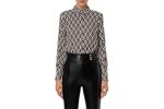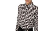 Blusa de tejido fluido con estampado geométrico icónico y acabado elegante