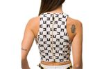 Blusa tipo halter con estampado gráfico icónico y acabado estructurado
