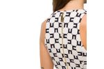 Blusa Elisabetta Franchi para mujer confeccionada en una mezcla de poliéster y elastano que proporciona un ajuste cómodo y estructurado. Presenta un diseño tipo halter que deja los hombros al descubierto, aportando una silueta moderna y femenina. Su estampado geométrico en contraste ruerza la identidad distintiva de la marca, mientras que los detalles decorativos con cadenas y pañuelo aportan un toque sofisticado y contemporáneo. Ideal para combinar con pantalones de talle alto o faldas, esta blusa es perfecta para looks de impacto tanto de día como de noche