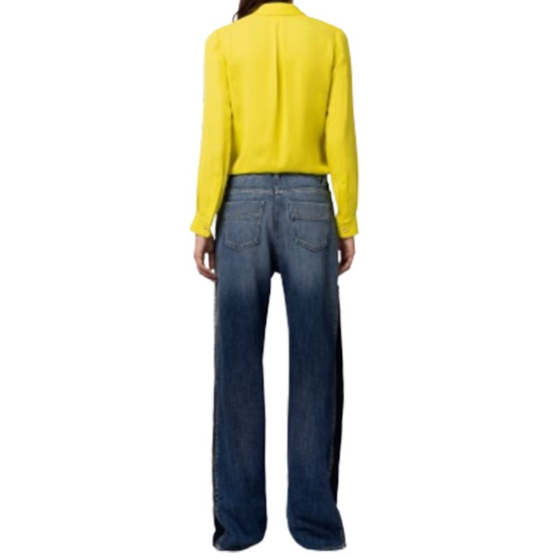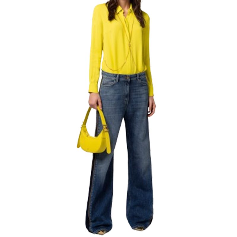 Blusa Elisabetta Franchi para mujer, confeccionada en viscosa 100% que proporciona suavidad, ligereza y una caída impecable. Su diseño tipo camisa incorpora cuello clásico y cierre frontal oculto, complementado por una elegante cadena metálica decorativa que cruza el frente, aportando un detalle joya característico de la marca. Las mangas largas con puños estructurados y su silueta fluida crean un equilibrio perfecto entre elegancia y modernidad. Ideal para looks formales, outfits de oficina sofisticados o estilismos de noche donde se busca un toque de color vibrante y rinamiento italiano