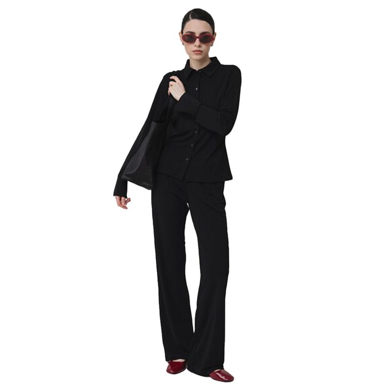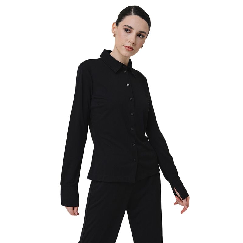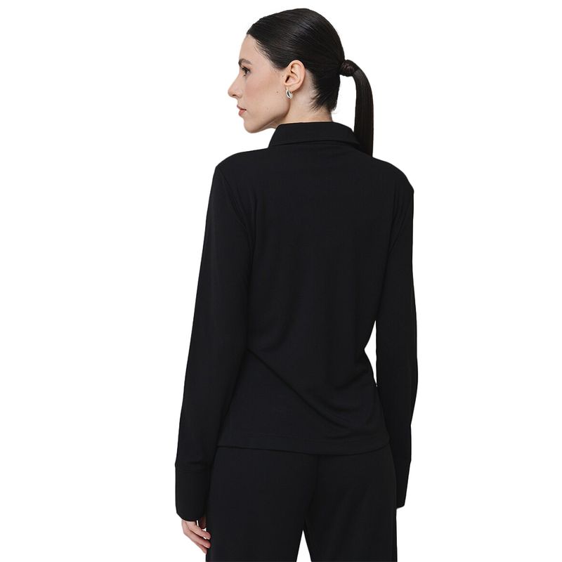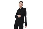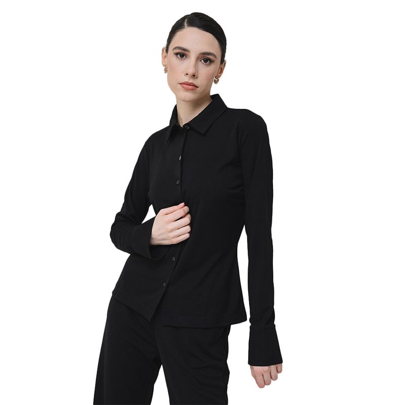 Blusa de manga larga en poliéster con cierre de botones y corte ajustado.