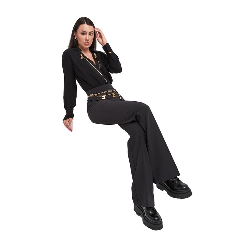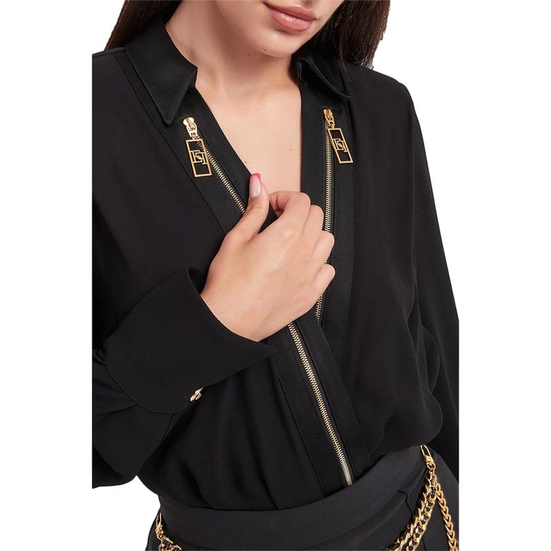 Body camisa Elisabetta Franchi negro con escote en V y detalle metálico para mujer