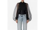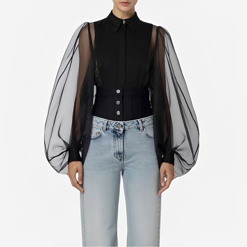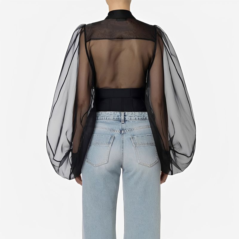 Body camisero con mangas voluminosas translúcidas y ajuste estructurado en cintura