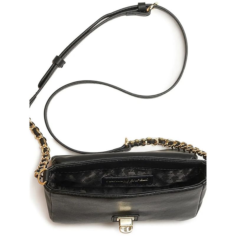 Bolso de cuero acolchado con herrajes metálicos en tono dorado
