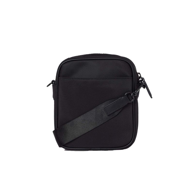 Bolso compacto Karl Lagerfeld para hombre, diseñado en un estilo moderno y minimalista ideal para uso diario. Fabricado en materiales resistentes que combinan poliamida reciclada y poliuretano, ofrece durabilidad y ligereza. Presenta un llamativo logo en relieve de la marca en la parte frontal, bolsillo externo con cierre y cordón decorativo, además de una correa ajustable desmontable que permite llevarlo cómodamente al hombro o cruzado. Perfecto para guardar lo esencial como celular, billetera y llaves, es un accesorio práctico y elegante para complementar cualquier look urbano.