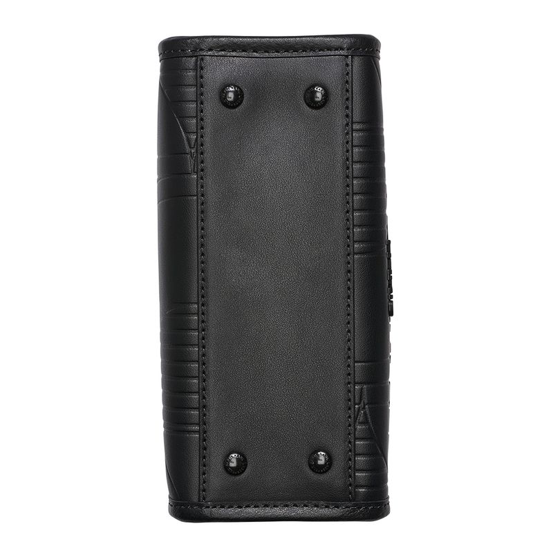 Bolso de superficie suave con acabado en cuero y detalles en relieve