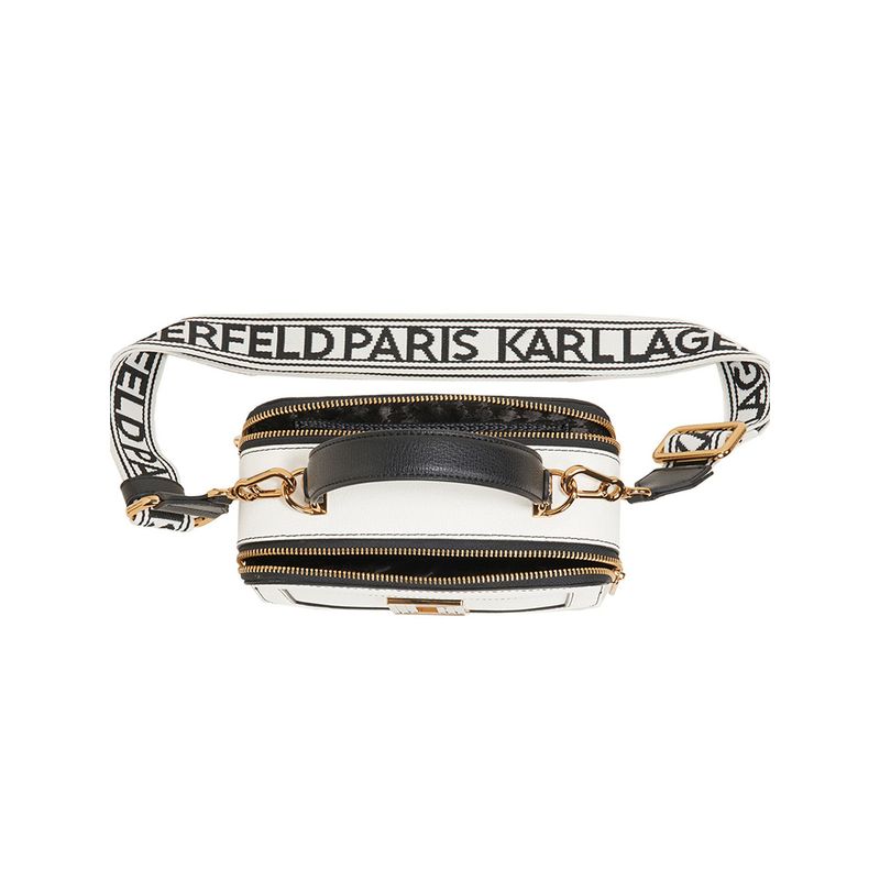 Bolso Karl Lagerfeld tipo cámara con aplique metálico geométrico para mujer