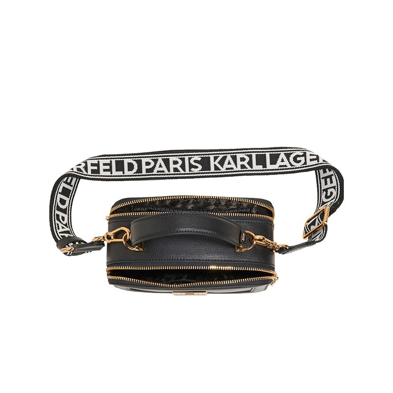 Bolso Karl Lagerfeld tipo cámara con aplique metálico geométrico para mujer