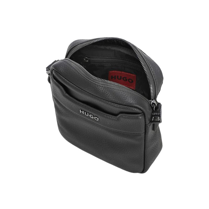 Bolso reporter HUGO para hombre, diseñado con un estilo moderno y funcional. Confeccionado en mezcla de poliuretano reciclado, poliéster y poliuretano que le otorgan resistencia y un acabado texturizado de aspecto sofisticado. Cuenta con compartimento principal de cierre seguro y detalles minimalistas con el logo HUGO en relieve en la parte frontal. Su correa ajustable permite llevarlo cómodamente cruzado o al hombro, convirtiéndolo en el accesorio perfecto para el día a día o salidas casuales.