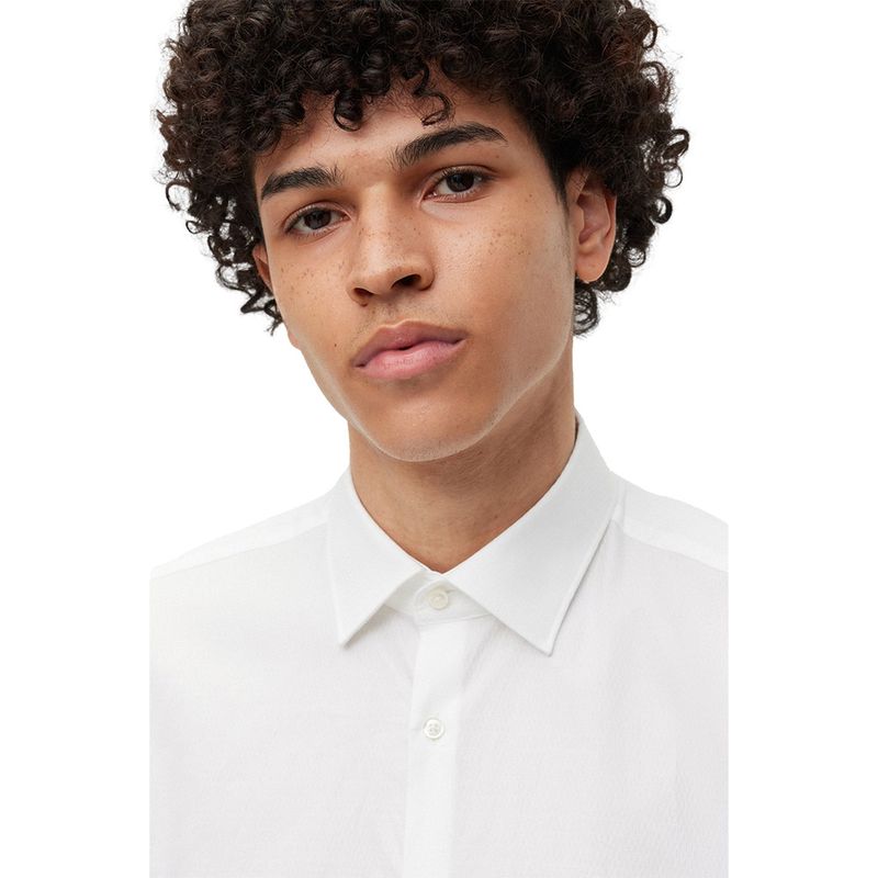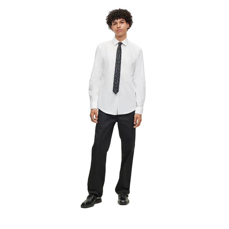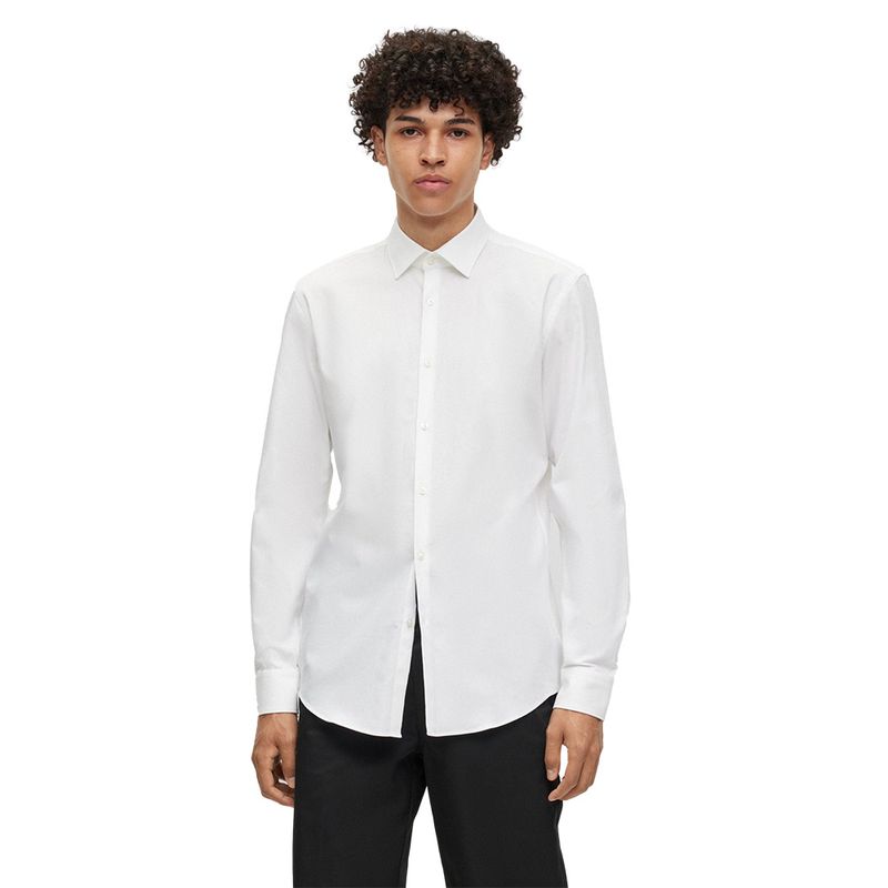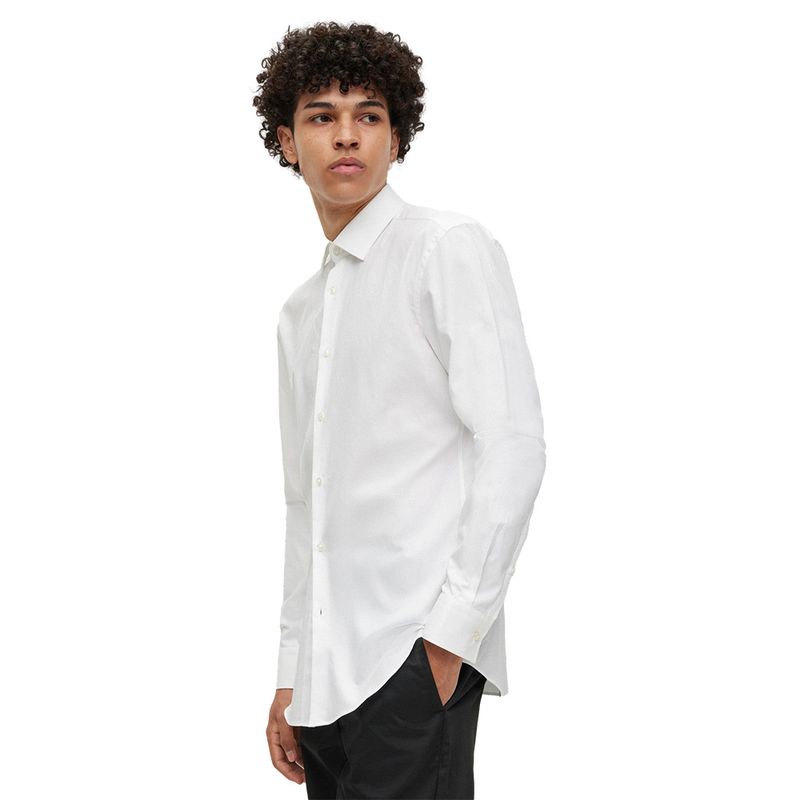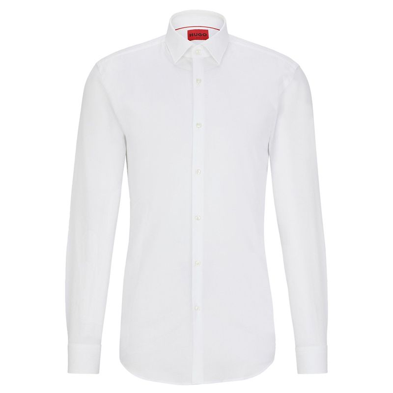 Camisa HUGO para hombre confeccionada en 100% algodón de alta calidad, que aporta frescura y comodidad durante todo el día Presenta un diseño moderno con cuello Kent, cierre frontal de botones, puños cuadrados y una estructura rica que resalta su estilo sofisticado Su corte ajustado ofrece un fit estilizado, convirtiéndola en la prenda perfecta tanto para looks de oficina como para ocasiones especiales