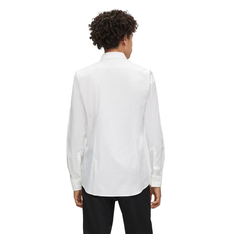 Camisa HUGO para hombre confeccionada en 100% algodón de alta calidad, que aporta frescura y comodidad durante todo el día Presenta un diseño moderno con cuello Kent, cierre frontal de botones, puños cuadrados y una estructura rica que resalta su estilo sofisticado Su corte ajustado ofrece un fit estilizado, convirtiéndola en la prenda perfecta tanto para looks de oficina como para ocasiones especiales