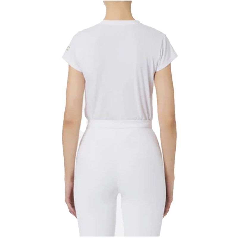 Camiseta Elisabetta Franchi para mujer elaborada en algodón 100%, pensada para ofrecer máxima comodidad y un acabado impecable. Su diseño de líneas minimalistas, cuello redondo y mangas cortas crea una silueta equilibrada y versátil. El color blanco aporta luminosidad y sofisticación, convirtiéndola en una prenda esencial para looks casuales rinados o combinaciones más formales con piezas estructuradas de la marca. Un básico atemporal que rleja la elegancia característica de Elisabetta Franchi