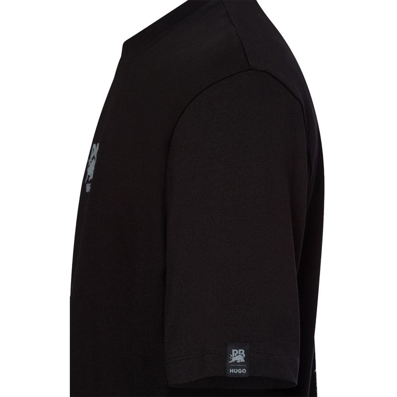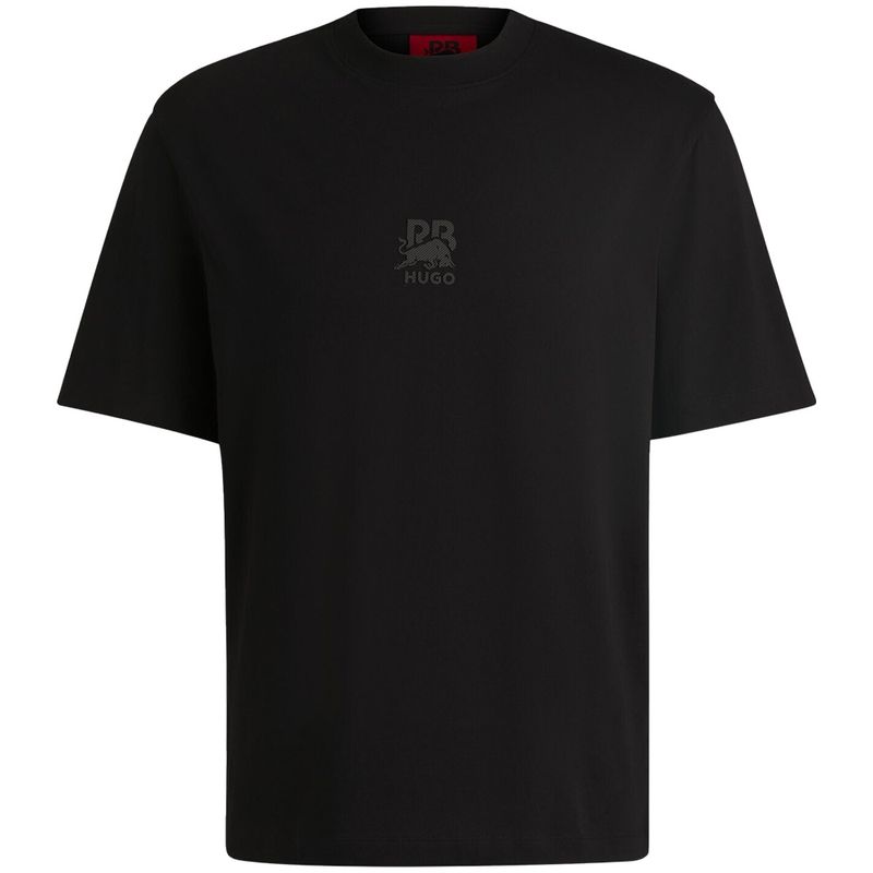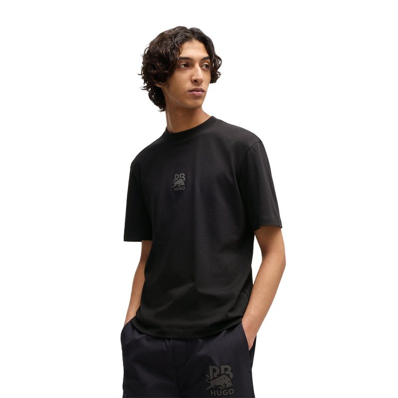 Camiseta HUGO para hombre confeccionada en 100% algodón suave, con estampado frontal DR que aporta un toque moderno y distintivo. Su diseño clásico de cuello redondo y corte regular brinda comodidad y estilo en el día a día. Ideal para looks casuales o urbanos, esta prenda refleja la esencia contemporánea y elegante de HUGO.