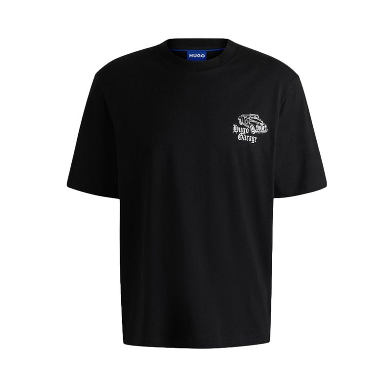 Camiseta regular fit HUGO para hombre, confeccionada en 100% algodón suave que ofrece una sensación agradable al tacto y máxima comodidad. Incluye un estampado gráfico de estilo vintage en el pecho, inspirado en los clásicos talleres automovilísticos, aportando un toque retro y moderno a la vez. Con cuello redondo y manga corta, esta camiseta es ideal para looks urbanos y casuales. Perfecta para combinar con jeans o bermudas para un estilo relajado y contemporáneo.