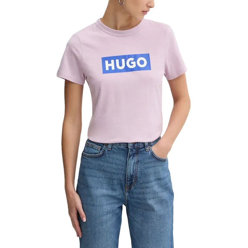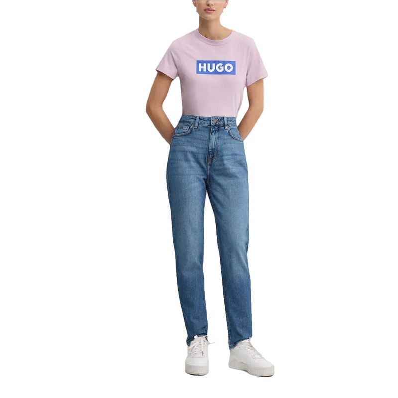 Camiseta HUGO para mujer confeccionada en 100% algodón, ideal para un look casual con estilo. Presenta cuello redondo, mangas cortas y un diseño moderno con el logotipo HUGO estampado en contraste sobre el pecho. Su textura suave y ligera ofrece comodidad durante todo el día. Perfecta para combinar con jeans, shorts o faldas, esta prenda aporta un toque juvenil y contemporáneo al guardarropa.