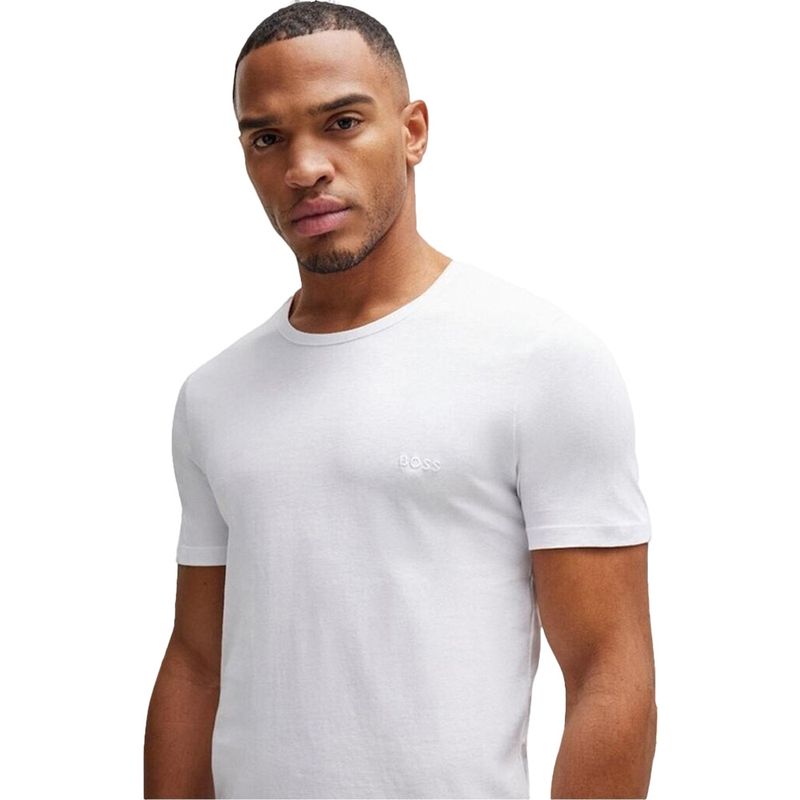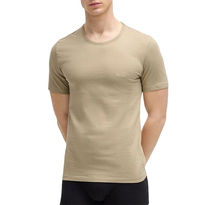Camisetas básicas Hugo para hombre, confeccionadas en 100% algodón que garantiza frescura, suavidad y comodidad durante todo el día. Este set incluye tres camisetas en colores blanco, negro y beige, todas con cuello redondo y manga corta. Su ajuste regular ofrece libertad de movimiento y un estilo atemporal, ideal para combinar en looks casuales, como prenda interior o en outfits relajados. Un conjunto versátil que se adapta a cualquier ocasión.