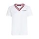 Camiseta de algodón orgánico con cuello en V decorado con ribete tricolor.