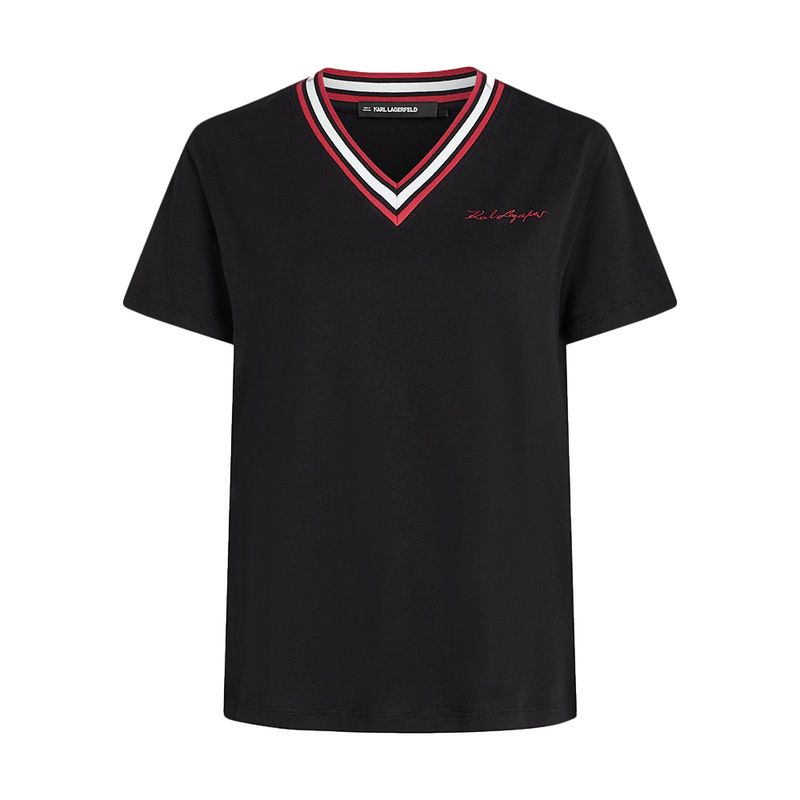 Camiseta Karl Lagerfeld con cuello en V y ribete tricolor para mujer