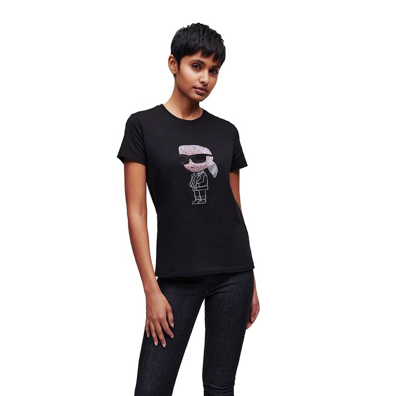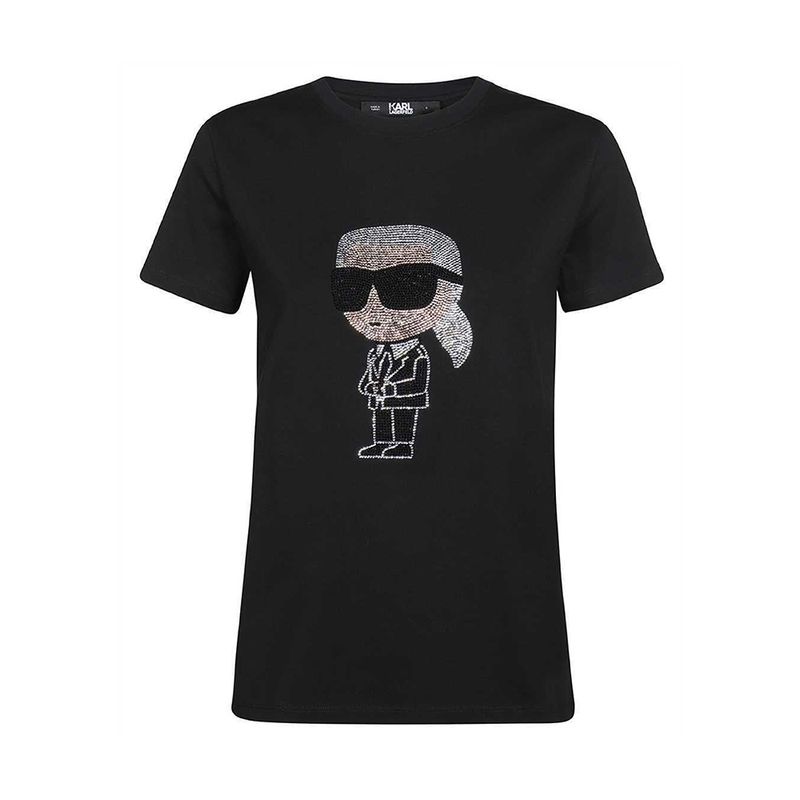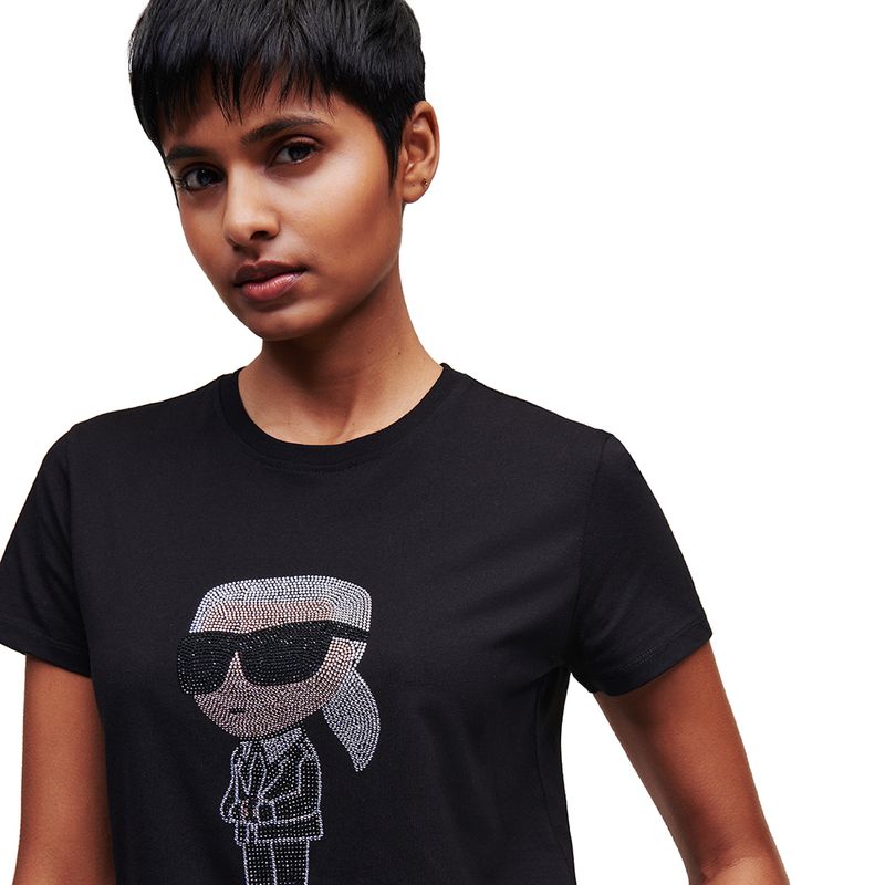 Camiseta Karl Lagerfeld con figura Karl iconic en pedrería para mujer