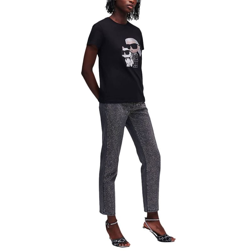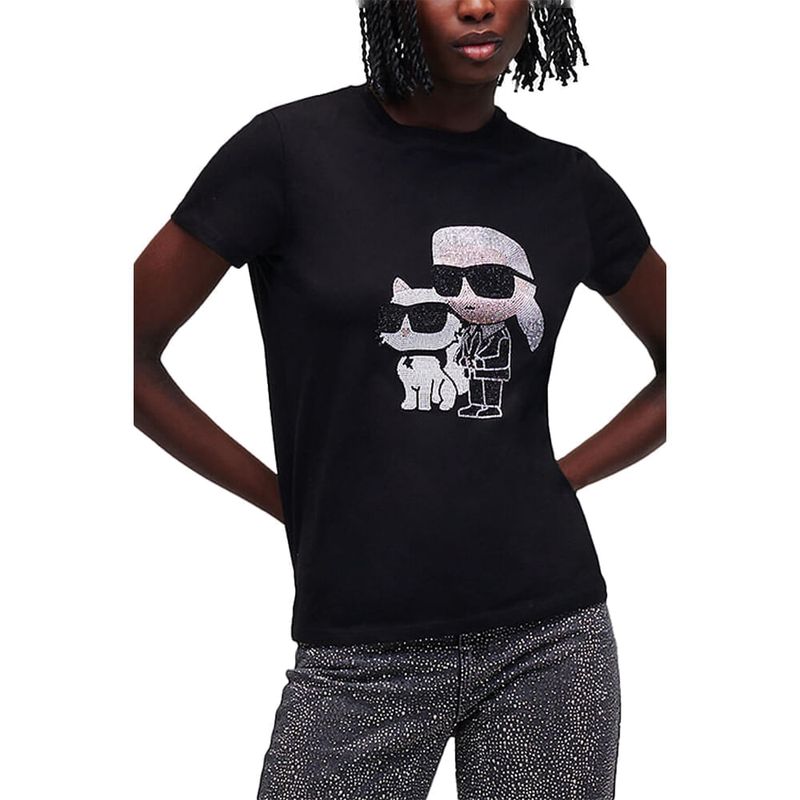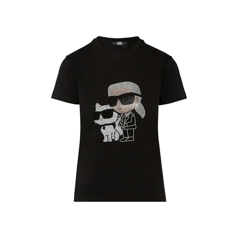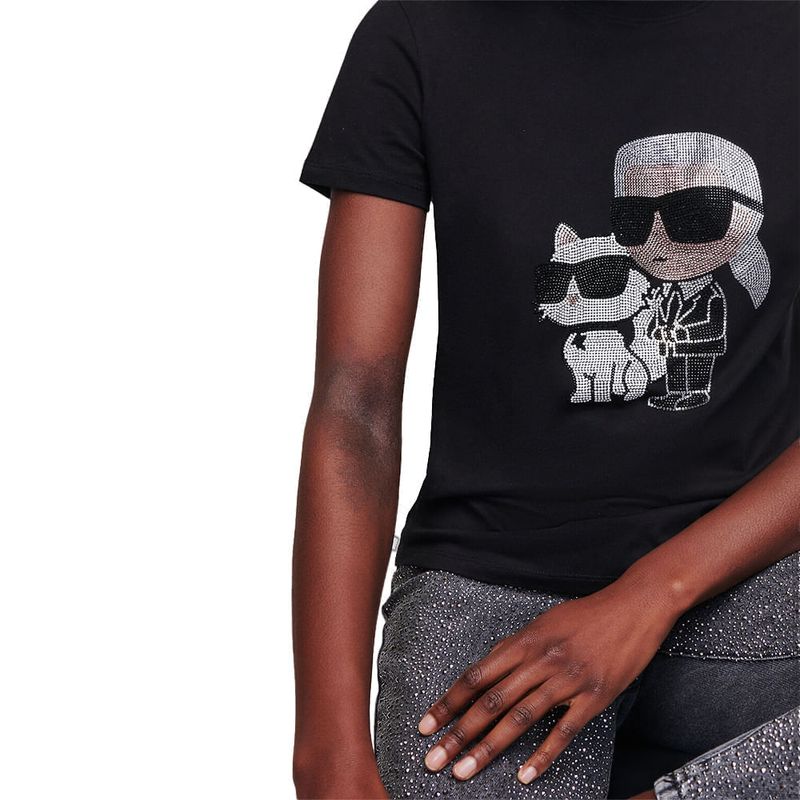 Camiseta Karl Lagerfeld con figura karl y choupette en pedrería para mujer