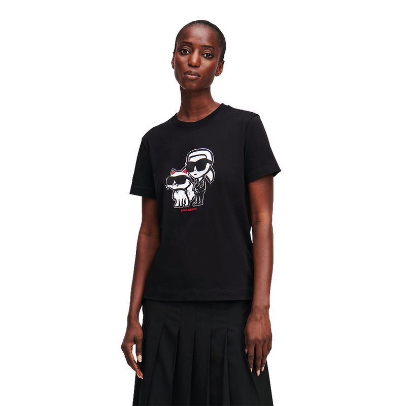 Camiseta karl lagerfeld con gráfico icónico Karl y Choupette para mujer