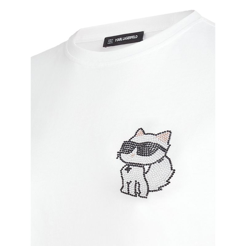 Camiseta Karl Lagerfeld con logo Choupette en pedrería para mujer