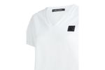 Camiseta de algodón con cuello en V y logotipo lateral en cuadro