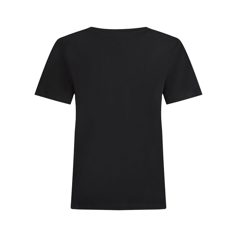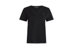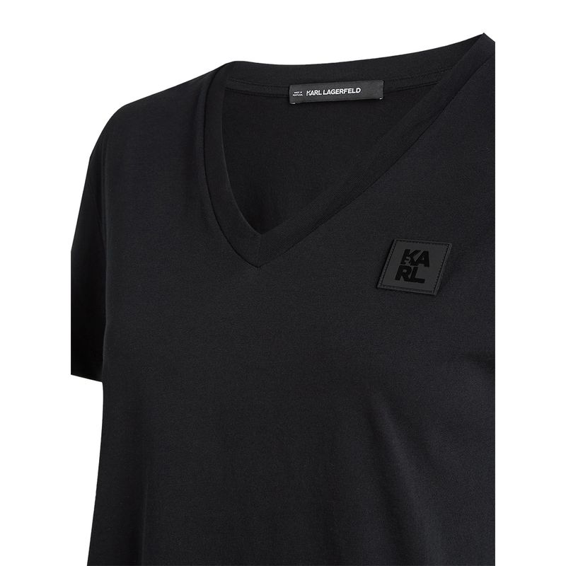 Camiseta Karl Lagerfeld para mujer confeccionada en 100% algodón, con diseño moderno y versátil. Incorpora cuello en V, manga corta y un distintivo logotipo de la marca en forma de cuadro ubicado en el costado derecho. Su tejido de algodón ofrece suavidad, comodidad y transpirabilidad, convirtiéndola en una prenda esencial para looks casuales y elegantes