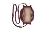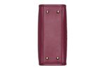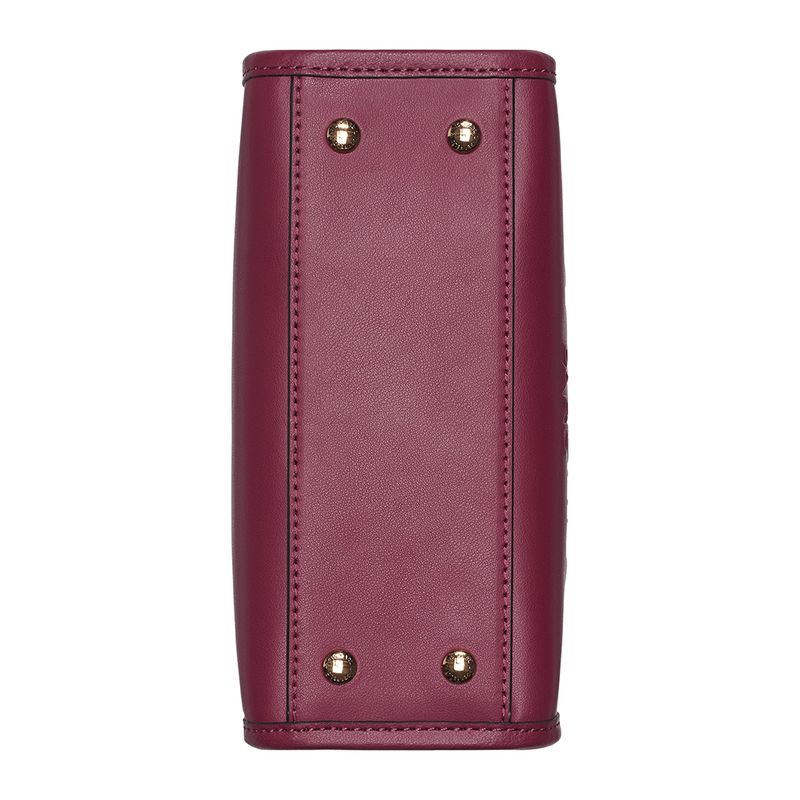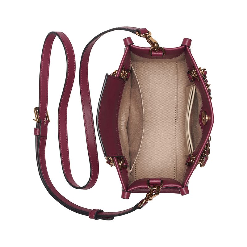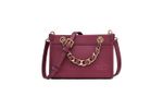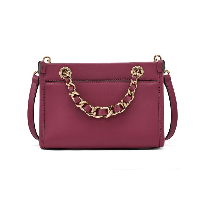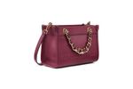 Cartera estructurada en color vino con asa de cadena dorada y logo en relieve
