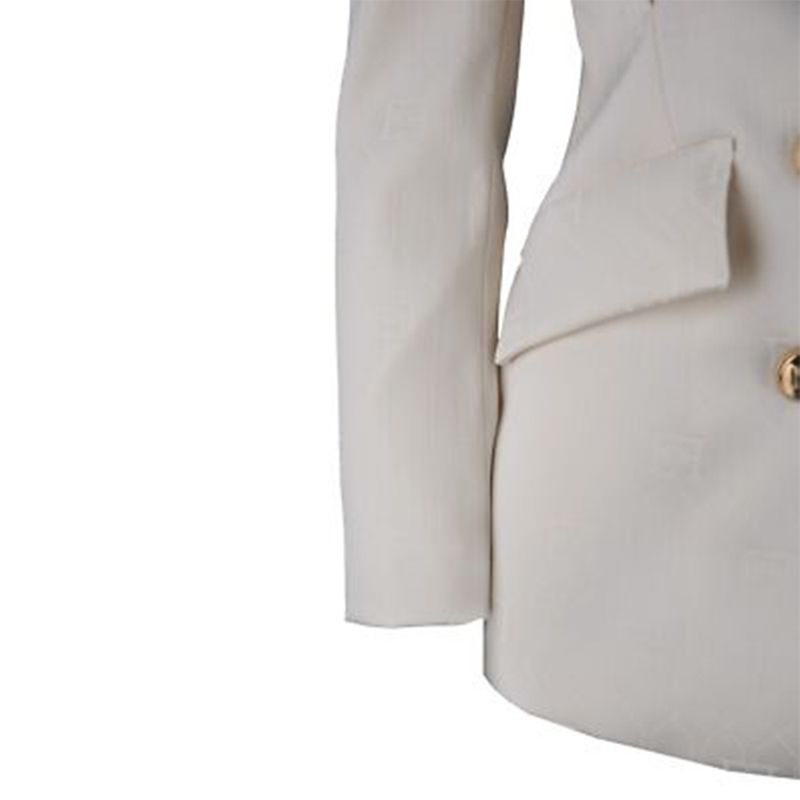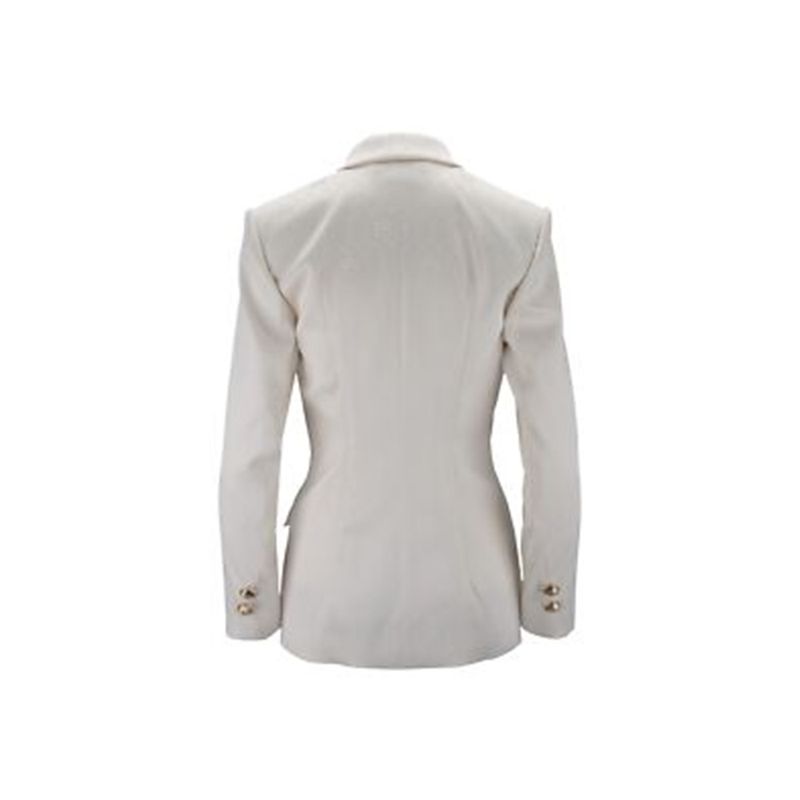 Chaqueta Elisabetta Franchi beige de corte sastre cruzado con botones dorados para mujer