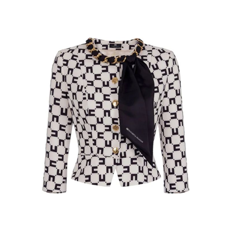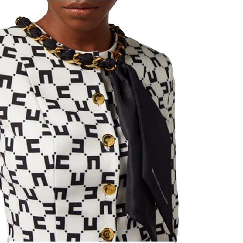 Chaqueta Elisabetta Franchi con estampado geométrico, cadena dorada y detalle de lazo para mujer