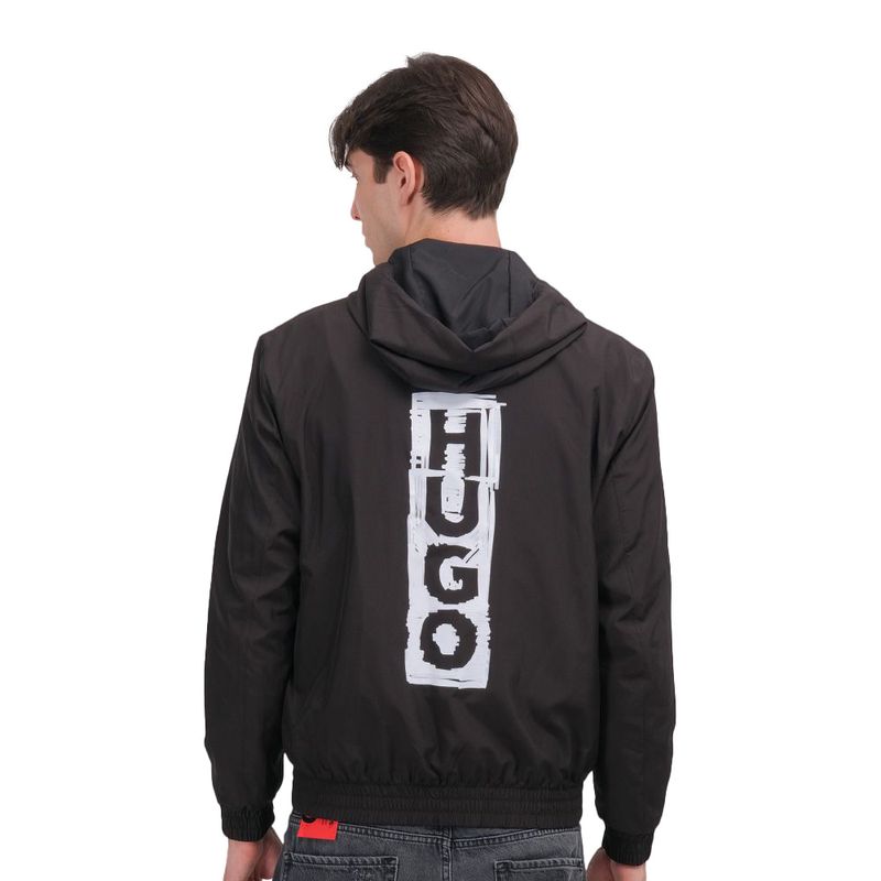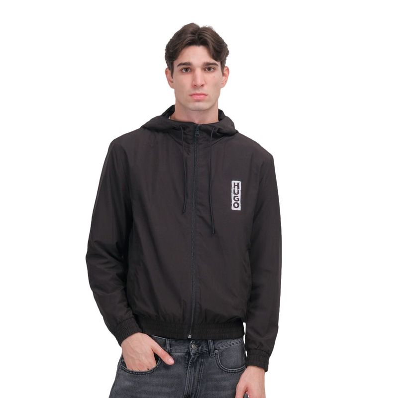 Chaqueta con capucha HUGO para hombre, elaborada en tejido 100% poliéster reciclado que aporta ligereza y resistencia Presenta un diseño moderno con estampado vertical del logotipo en la parte trasera y detalle de la marca en el pecho Su ajuste cómodo y cierre con cremallera la convierten en una prenda versátil y práctica Ideal para looks urbanos y casuales, esta chaqueta refleja el estilo contemporáneo de HUGO
