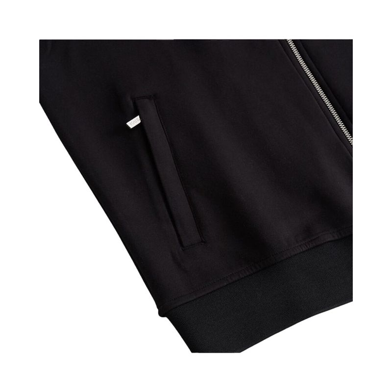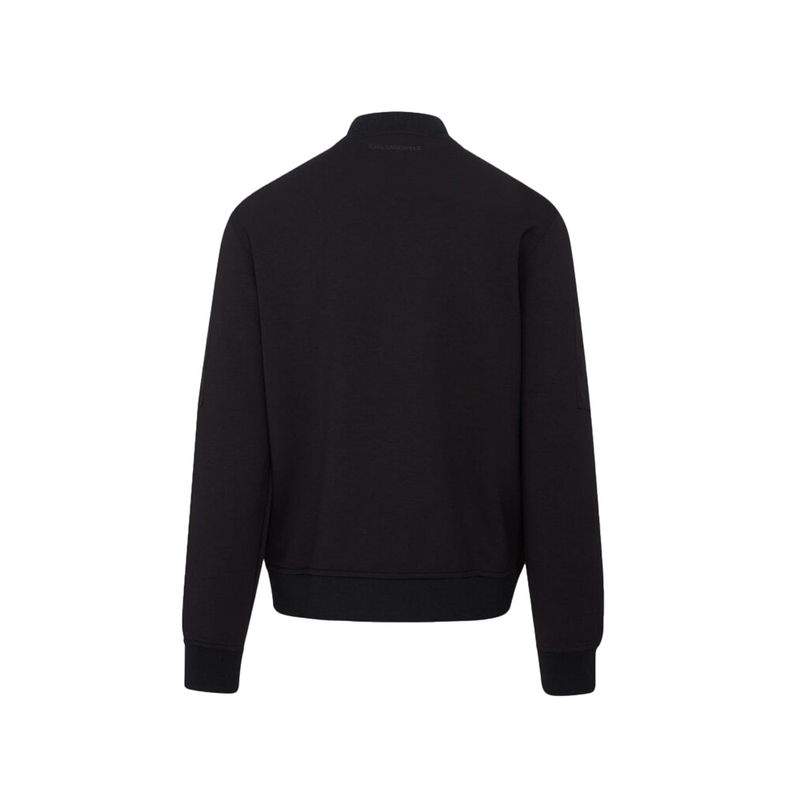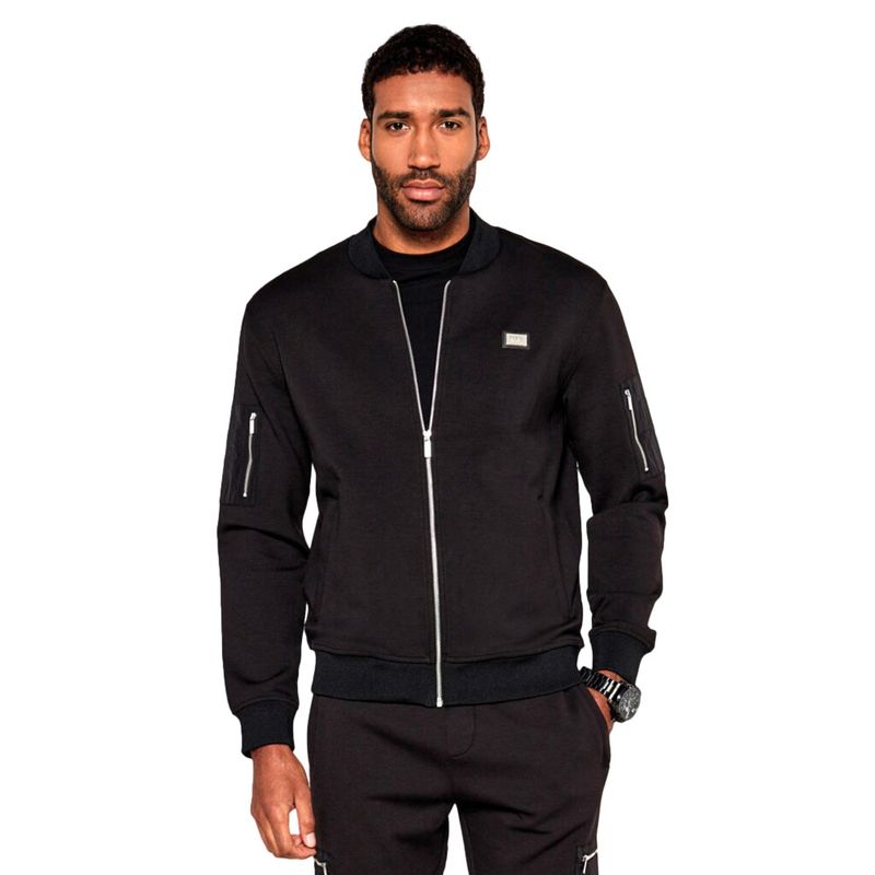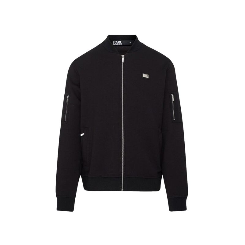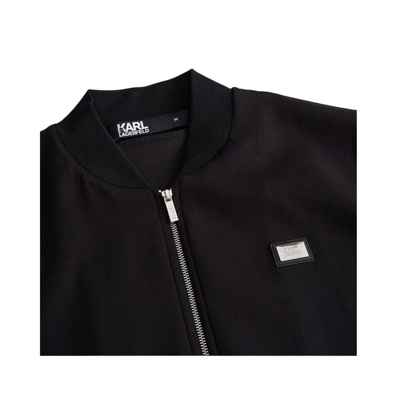 Chaqueta Karl Lagerfeld para hombre confeccionada en una mezcla de 78% poliéster, 17% viscosa y 5% elastano, que proporciona una textura suave, elástica y resistente. Presenta un diseño moderno tipo bomber, en color negro, con cierre frontal metálico, bolsillos con cremallera en la manga y los laterales, y una placa con el logotipo Karl Lagerfeld en el pecho. Sus puños y dobladillo acanalados aseguran un ajuste cómodo y elegante, ideal para looks urbanos y sofisticados.