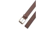 Cinturón moderno con hebilla metálica grabada y costuras en contraste