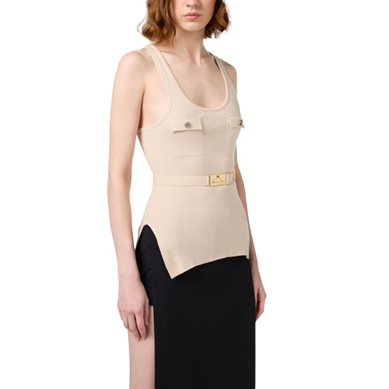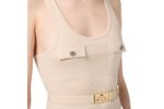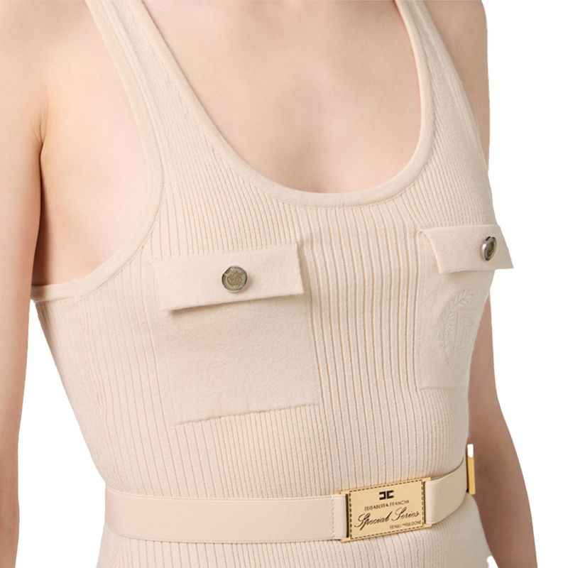 Esqueleto Elisabetta Franchi para mujer confeccionado en una sofisticada mezcla de fibras que aporta suavidad, elasticidad y un ajuste ceñido que realza la silueta. Presenta un diseño sin mangas con espalda tipo racerback que brinda un aire moderno y deportivo, equilibrado con un acabado elegante. Incorpora bolsillos decorativos en el frente y un cinturón a tono con hebilla metálica que dine la cintura con estilo. Ideal para llevar solo o como prenda protagonista bajo chaquetas y blazers, es perfecto para looks contemporáneos de día o de noche