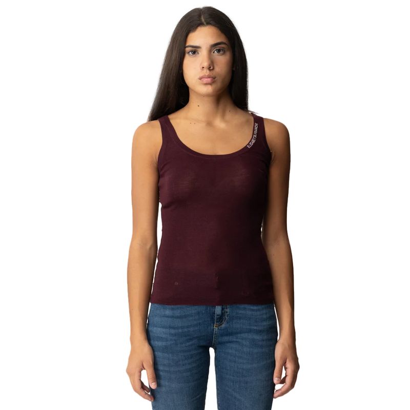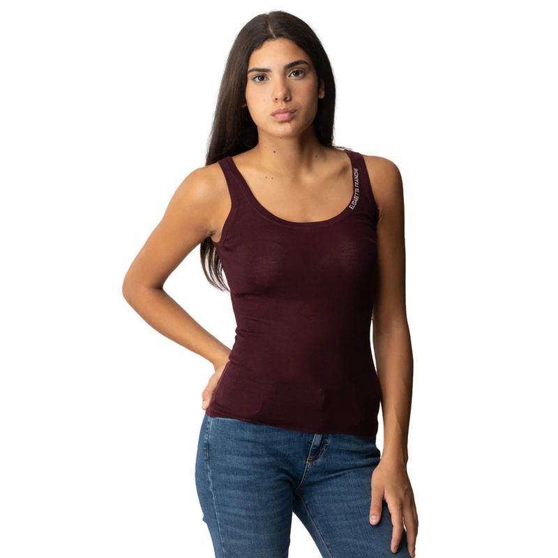 Esqueleto Elisabetta Franchi para mujer confeccionado en lana virgen de alta calidad que proporciona suavidad, ligereza y una caída elegante. Su diseño de punto fino crea un acabado delicado que se adapta al cuerpo realzando la silueta con naturalidad. Presenta escote amplio y corte ajustado, complementado con un discreto detalle de logo en uno de los tirantes que ruerza la identidad sofisticada de la marca. Ideal para looks contemporáneos de día o de noche, puede llevarse solo o como prenda base bajo chaquetas y blazers