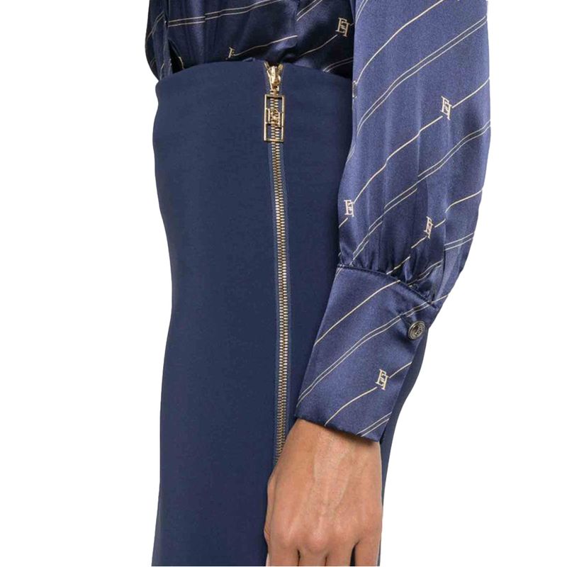 Falda midi de corte lápiz Elisabetta Franchi para mujer, confeccionada en tejido elástico de alta calidad que ofrece comodidad y un ajuste preciso. Su diseño minimalista se realza con cierres laterales decorativos en el bajo, aportando un toque moderno y sofisticado sin perder elegancia. Presenta una silueta recta que estiliza la figura femenina y terminaciones limpias que garantizan un acabado impecable. Ideal para looks formales, outfits de oficina o combinaciones elegantes de día y noche, esta falda rleja el estilo rinado y contemporáneo característico de Elisabetta Franchi