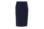 Falda de acabado liso y estructura elegante con detalles metálicos sutiles en el bajo