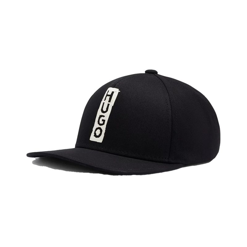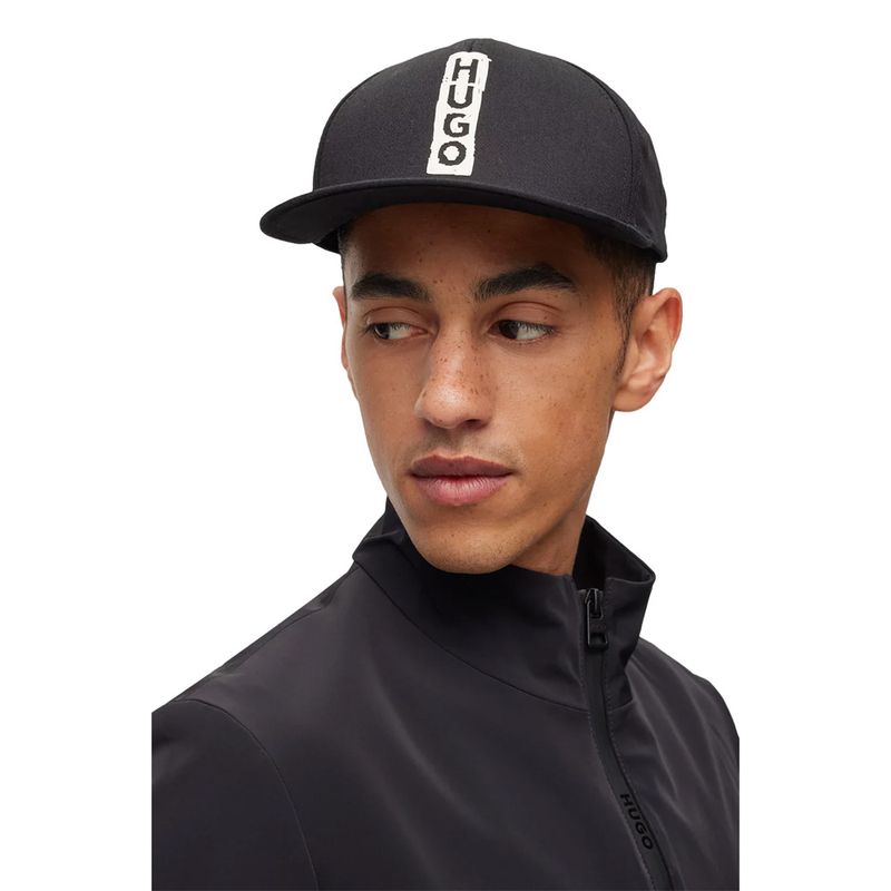 Diseño de cinco paneles en sarga de algodón; logo HUGO estilo marcador en el frente