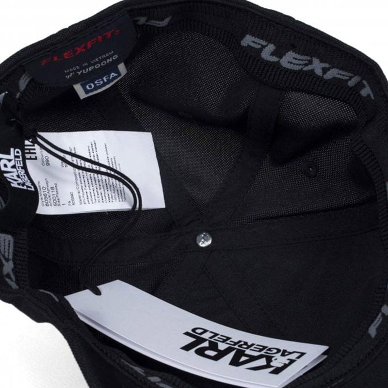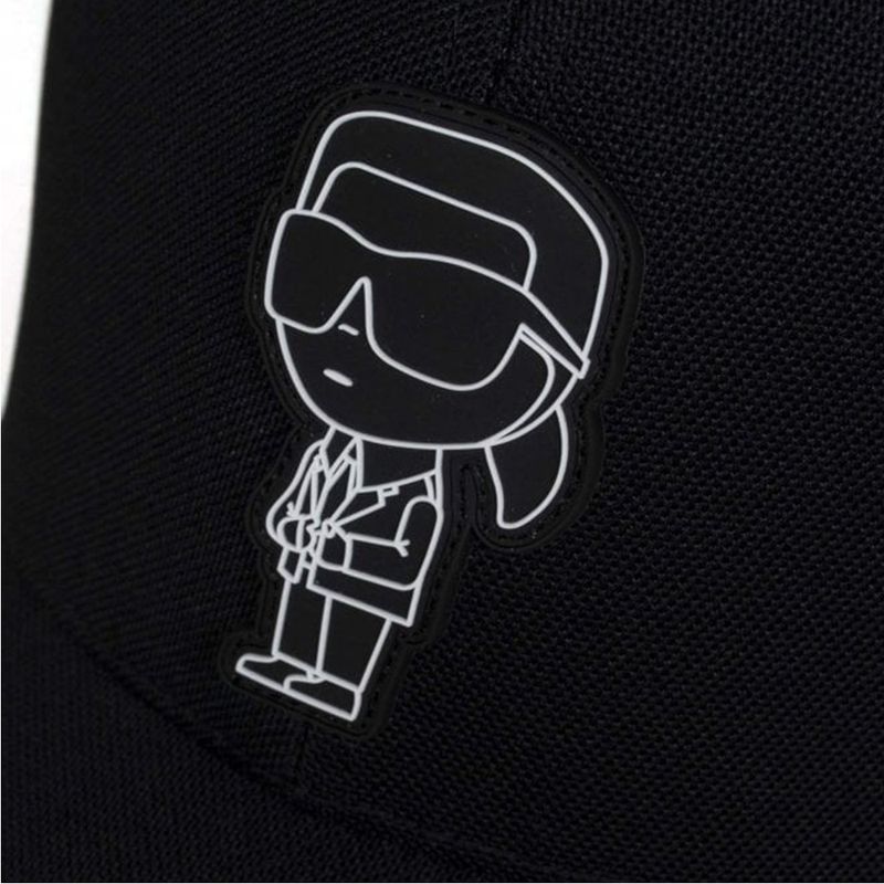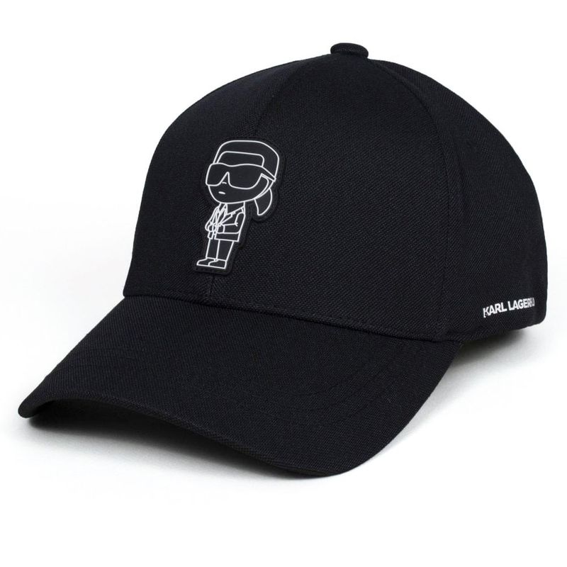 Gorra con diseño moderno y aplique del personaje icónico Karl Lagerfeld.
