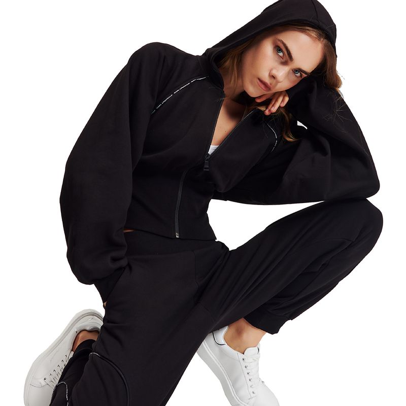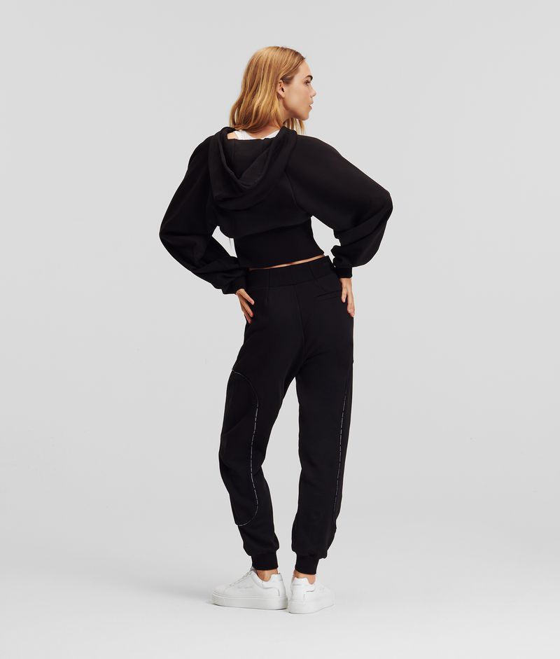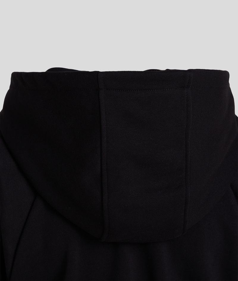 Hoodies karl lagerfeld para mujer, con diseño corto y capucha ajustable. confeccionada en 100% algodón orgánico para brindar comodidad y transpirabilidad. destaca por sus costuras en contraste, el logotipo karl lagerfeld en la parte delantera y mangas raglán que aportan un toque moderno. cuenta con cierre de cremallera y dobladillo alto acanalado en la cintura, ideal para looks deportivos y de ocio.