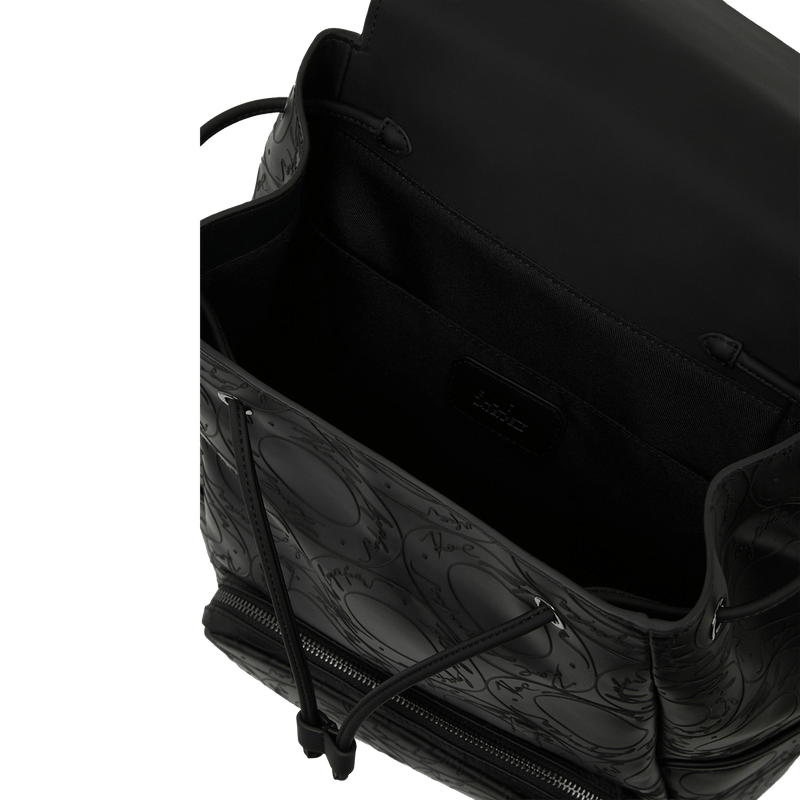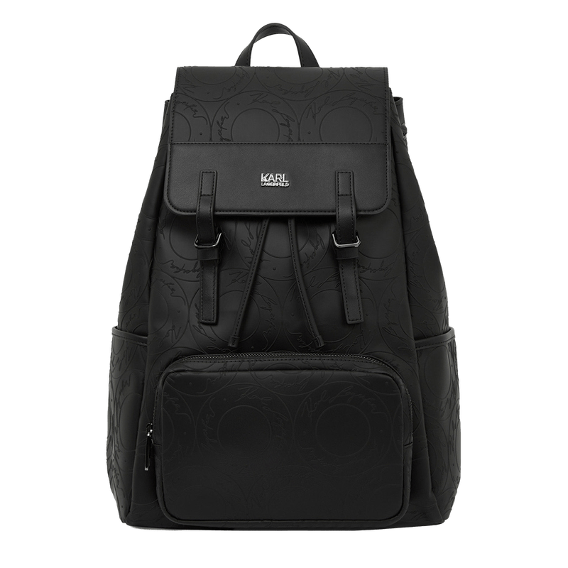 Mochila con diseño grabado, solapa y correas ajustables para hombre