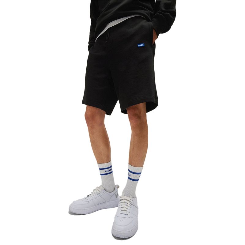 Pantalón corto casual Hugo en color negro para hombre, confeccionado en 100% algodón de alta calidad que ofrece comodidad y frescura. Su diseño moderno incluye cintura elástica con cordón ajustable para un mejor ajuste y libertad de movimiento. Presenta corte recto y logo distintivo de Hugo en contraste, lo que lo convierte en una prenda versátil ideal para looks relajados, deportivos o de tiempo libre. Una opción práctica y estilosa para la temporada cálida