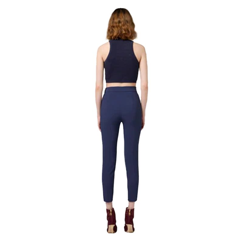 Pantalón ajustado Elisabetta Franchi para mujer, confeccionado en una mezcla de tejidos de alta calidad que garantiza comodidad, elasticidad y un ajuste impecable. Su diseño de corte recto y cintura alta estiliza la figura, mientras que los detalles de cremalleras decorativas en tono dorado aportan un acento moderno y elegante característico de la marca. Cuenta con terminaciones limpias y estructura firme, ideal para crear looks sofisticados tanto para el día como para la noche. Perfecto para combinar con blusas, tops o chaquetas formales