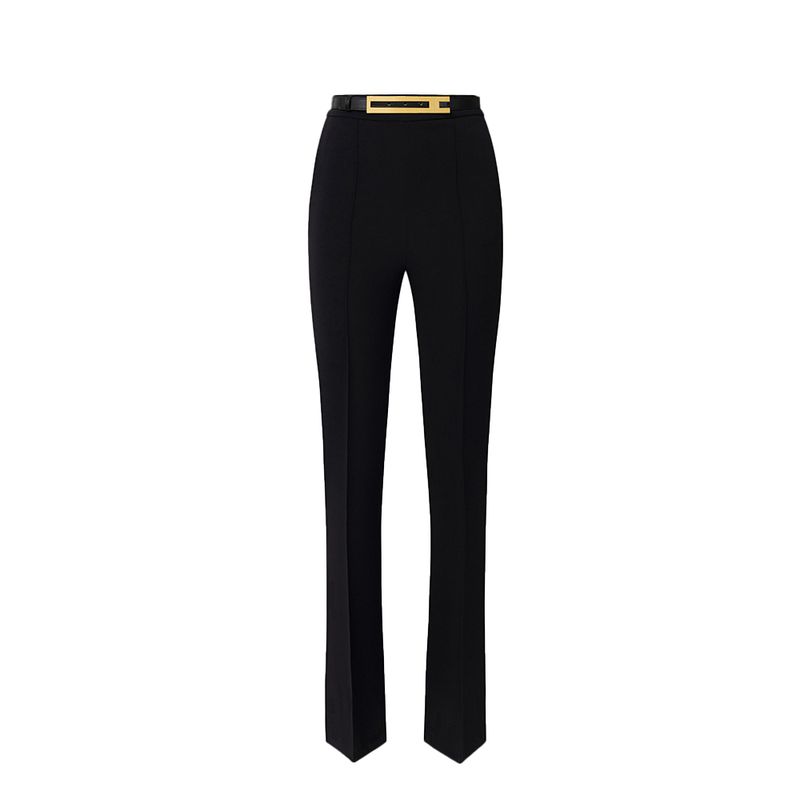 Pantalón de tejido elástico con estructura dinida y cinturón integrado de acabado dorado