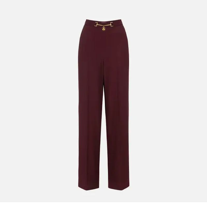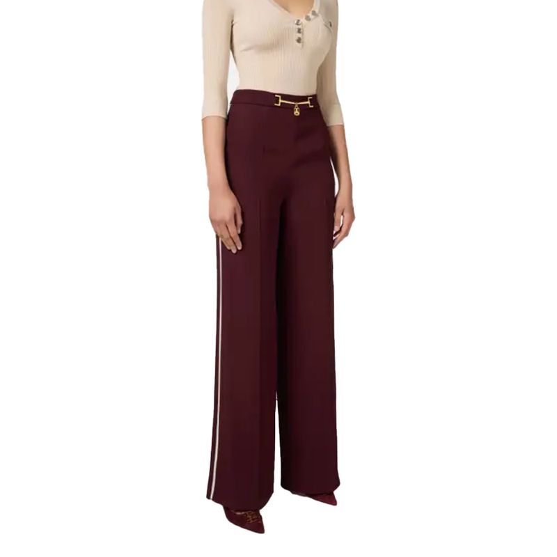 Pantalón Elisabetta Franchi de tiro alto con línea lateral contrastante y detalle metálico para mujer